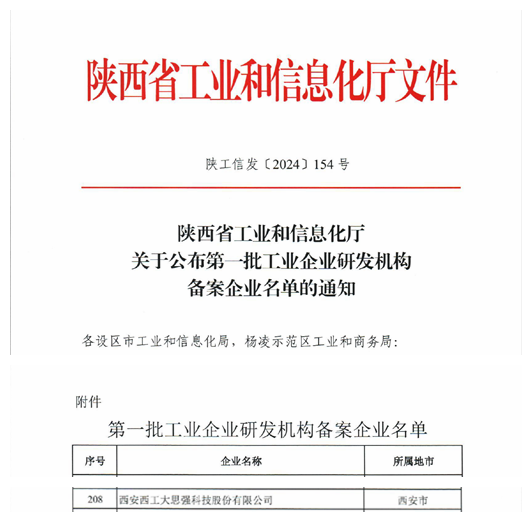 思強(qiáng)公司通過陜西省第一批工業(yè)企業(yè)研發(fā)機(jī)構(gòu)備案